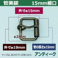 | 品 名:管美錠 15mm細口【アンティーク】 サイズ:外寸19mm×15mm内寸15mm 材 質:本体・ピン鉄製 メッキ:アンティーク 詳 細:4個入り1袋 ●美錠の大きさは下記です。 ・美錠3104はコチラ ・美錠1020はコチラ ・美錠462はコチラ ・美錠410はコチラ ・管美錠はコチラ ・舟形美錠はコチラ ・梯子美錠はコチラ ・マグネットバックルはコチラ ●美錠お得セットは下記です。 ・小袋セット ・リーズナブルなお得セット ●その他、カシメ・ハトメは下記です。 ・カシメはコチラ ・ハトメはコチラ ■クラフト金具卸の美錠 美錠とは、ベルトなどに使われる紐調節・紐接続金具です。 一般に大きいものをバックル、小さめの雑貨に使われるものを美錠(尾錠)と呼んでいます。 いすれも、洋服・鞄・ベルトに使われる帯状の紐を、ユーザーが長さを調節しながら接続開閉できる金具が美錠です。 クラフト金具卸では主にカン類にピン(足)が付いたピンバックルを中心にお取り扱いしています。 ピンバックルの特徴は、ベルト本体にピン(足)を通すための穴が必要です。穴は小さいものならそのまま、大きめの穴ならハトメなどで補強する必要があります。 同じ平紐の調節金具である送り金具との違いは、ピンが有るものが美錠です。 尚、ユーザーに開閉させず、紐の長さを調整するだけの役目なら送り金具の方が適しています。 ・マグネットバックル(ベルト本体に穴をあけない尾錠・バックル ) クラフト金具卸では、穴をあけないベルト金具として磁石で開閉するマグネット美錠をお取り扱いしています。 ・日型美錠(舟形・梯子・美錠3104・美錠1020他) 形状が漢字の「日」の字をしているものを「日型美錠」と呼んでいます。 ベルト装着時に美錠の外形フェースがそのまま出てきます。 ・口型美錠(管美錠・美錠462・・美錠410) 漢字の「口」の字をしている美錠を口型美錠と呼んでいす。 口型美錠は、ピン(足)がついている方をベルト紐先端と接着させる必要があり、そちらの辺は隠れます。 接着させる辺の直線部分がベルト幅となります。「内径」の数字を参考に、ベルト幅から最適な美錠をお探しください。 |