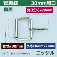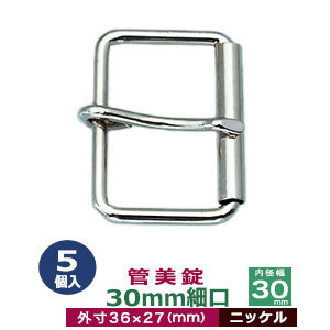 | 品 名:管美錠 30mm細口【ニッケル】 サイズ:外寸36mm×27mm内寸30mm 材 質:本体・ピン鉄製 メッキ:ニッケル 詳 細:5個入り1袋 ●美錠の大きさは下記です。 ・美錠3104はコチラ ・美錠1020はコチラ ・美錠462はコチラ ・美錠410はコチラ ・管美錠はコチラ ・舟形美錠はコチラ ・梯子美錠はコチラ ・マグネットバックルはコチラ ●美錠お得セットは下記です。 ・小袋セット ・リーズナブルなお得セット ●その他、カシメ・ハトメは下記です。 ・カシメはコチラ ・ハトメはコチラ ■クラフト金具卸の美錠 美錠とは、ベルトなどに使われる紐調節・紐接続金具です。 一般に大きいものをバックル、小さめの雑貨に使われるものを美錠(尾錠)と呼んでいます。 いすれも、洋服・鞄・ベルトに使われる帯状の紐を、ユーザーが長さを調節しながら接続開閉できる金具が美錠です。 クラフト金具卸では主にカン類にピン(足)が付いたピンバックルを中心にお取り扱いしています。 ピンバックルの特徴は、ベルト本体にピン(足)を通すための穴が必要です。穴は小さいものならそのまま、大きめの穴ならハトメなどで補強する必要があります。 同じ平紐の調節金具である送り金具との違いは、ピンが有るものが美錠です。 尚、ユーザーに開閉させず、紐の長さを調整するだけの役目なら送り金具の方が適しています。 ・マグネットバックル(ベルト本体に穴をあけない尾錠・バックル ) クラフト金具卸では、穴をあけないベルト金具として磁石で開閉するマグネット美錠をお取り扱いしています。 ・日型美錠(舟形・梯子・美錠3104・美錠1020他) 形状が漢字の「日」の字をしているものを「日型美錠」と呼んでいます。 ベルト装着時に美錠の外形フェースがそのまま出てきます。 ・口型美錠(管美錠・美錠462・・美錠410) 漢字の「口」の字をしている美錠を口型美錠と呼んでいす。 口型美錠は、ピン(足)がついている方をベルト紐先端と接着させる必要があり、そちらの辺は隠れます。 接着させる辺の直線部分がベルト幅となります。「内径」の数字を参考に、ベルト幅から最適な美錠をお探しください。 |
