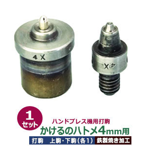 | 品 名:ハンドプレス打駒【かけるのハトメ4mm用】 サイズ:上駒幅13mm高31mm軸幅8mm :下駒幅22mm高29.5mm軸幅19mm 材 質:鉄製焼き加工 詳 細:上駒下駒1セット入 ご注意ください:お手持ちのハンドプレス機によっては、 合わない場合もございます。また、工具類は消耗品のため 開封・未開封に関わらず返品交換いたしかねますので、 ご確認の上、ご購入ください。 当店の工具類は、当店の金具に合わせて作っております。 ご使用の際には、当店の金具をご利用ください。 ●ハンドプレス機は下記です。 ・ハンドプレス機 ●ハンドプレス機打駒は下記です。 ・各種打駒 ●プロ用手打ち工具は下記です。 ・プロ用手打ち工具 ●ハトメの大きさは下記です。 ・かけるのハトメはコチラ ・ハトメはコチラ ・両面ハトメはコチラ ・アイレットはコチラ ■クラフト金具卸のハンドプレス打駒 小型のハンドプレス機にセットし、金具に圧力をかけ、取り付けるための先端用部品工具です。上駒と下駒のセットを打駒と呼び、カシメやハトメ、ホックなどの金具にあわせて打駒をご用意しています。 ハンドプレス機を使用すると、力にない方でも比較的簡単で綺麗にハトメなどの金具を取り付けられます。 ●クラフト金具卸のハンドプレス打駒ハトメ・アイレット用 ハトメ・アイレット用打駒は、ハトメの番手ごとに駒が変わりますが、足長・足短は同じ駒が使えます。 また真鍮製ハトメと、アルミ製ハトメは同じ駒が使えますが、ステンレス製ハトメは耐久性により、ステンレス専用の打駒をご使用ください。 ●ハンドプレス機への取り付け方 ・レバーと連動した芯棒の下に「上駒」をとりつけ、下の台座部分の穴に「下駒」を取付けます。 ●ハンドプレス機を使った金具の取り付け方 1.ハトメ抜き・穴あけポンチと呼ばれる工具でハトメの足を通す穴(ほぼ内径と同寸法の穴)をあける。 2.専用の駒をセットしたハンドプレスを用意します。 3.ハンドプレス機台座にセットした下駒の上にハトメの足を上にして載せます。 4.ハトメ足の上に穴を開けた布などを置きます。 5.ハトメ足の上の布などを挟む形でハトメ座を載せます。 6.ハンドプレス機のレバーを引き下ろします。 |