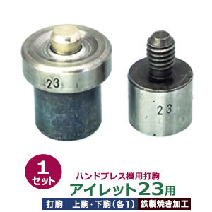 | 品 名:ハンドプレス打駒【打駒アイレット23用】 サイズ:上駒幅18mm高31mm軸幅8mm :下駒幅22mm高31mm軸幅19mm 材 質:鉄製焼き加工 詳 細:上駒下駒1セット入 ご注意ください:お手持ちのハンドプレス機によっては、 合わない場合もございます。また、工具類は消耗品のため 開封・未開封に関わらず返品交換いたしかねますので、 ご確認の上、ご購入ください。 当店の工具類は、当店の金具に合わせて作っております。 ご使用の際には、当店の金具をご利用ください。 ●ハンドプレス機は下記です。 ・ハンドプレス機 ●ハンドプレス機打駒は下記です。 ・各種打駒 ●プロ用手打ち工具は下記です。 ・プロ用手打ち工具 ●ハトメの大きさは下記です。 ・かけるのハトメはコチラ ・ハトメはコチラ ・両面ハトメはコチラ ・アイレットはコチラ ■クラフト金具卸のハンドプレス打駒 小型のハンドプレス機にセットし、金具に圧力をかけ、取り付けるための先端用部品工具です。上駒と下駒のセットを打駒と呼び、カシメやハトメ、ホックなどの金具にあわせて打駒をご用意しています。 ハンドプレス機を使用すると、力にない方でも比較的簡単で綺麗にハトメなどの金具を取り付けられます。 ●クラフト金具卸のハンドプレス打駒ハトメ・アイレット用 ハトメ・アイレット用打駒は、ハトメの番手ごとに駒が変わりますが、足長・足短は同じ駒が使えます。 また真鍮製ハトメと、アルミ製ハトメは同じ駒が使えますが、ステンレス製ハトメは耐久性により、ステンレス専用の打駒をご使用ください。 ●ハンドプレス機への取り付け方 ・レバーと連動した芯棒の下に「上駒」をとりつけ、下の台座部分の穴に「下駒」を取付けます。 ●ハンドプレス機を使った金具の取り付け方 1.ハトメ抜き・穴あけポンチと呼ばれる工具でハトメの足を通す穴(ほぼ内径と同寸法の穴)をあける。 2.専用の駒をセットしたハンドプレスを用意します。 3.ハンドプレス機台座にセットした下駒の上にハトメの足を上にして載せます。 4.ハトメ足の上に穴を開けた布などを置きます。 5.ハトメ足の上の布などを挟む形でハトメ座を載せます。 6.ハンドプレス機のレバーを引き下ろします。 |