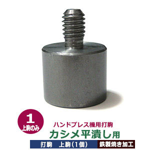 | 品 名:ハンドプレス打駒【カシメ平潰し用】上駒のみ サイズ:上駒 幅21mm 軸幅7.9mm 材 質:鉄製焼き加工 詳 細:上駒1個入 *カシメを平たく打ちたい場合や、平らにプレスする時用の平面的な上駒です。上駒の面が真っ平らになっています。上駒のみの販売です。 ハンドプレス機で使用する場合は、下駒も必要です。 ご注意ください:お手持ちのハンドプレス機によっては、 合わない場合もございます。また、工具類は消耗品のため 開封・未開封に関わらず返品交換いたしかねますので、 ご確認の上、ご購入ください。 当店の工具類は、当店の金具に合わせて作っております。 ご使用の際には、当店の金具をご利用ください。 ●ハンドプレス機は下記です。 ・ハンドプレス機 ●ハンドプレス機打駒は下記です。 ・各種打駒 ●プロ用手打ち工具は下記です。 ・プロ用手打ち工具 ●ハトメの大きさは下記です。 ・かけるのハトメはコチラ ・ハトメはコチラ ・両面ハトメはコチラ ・アイレットはコチラ ■クラフト金具卸のハンドプレス打駒 小型のハンドプレス機にセットし、金具に圧力をかけ、取り付けるための先端用部品工具です。上駒と下駒のセットを打駒と呼び、カシメやハトメ、ホックなどの金具にあわせて打駒をご用意しています。 ハンドプレス機を使用すると、力にない方でも比較的簡単で綺麗にハトメなどの金具を取り付けられます。 ●クラフト金具卸のハンドプレス打駒ハトメ・アイレット用 ハトメ・アイレット用打駒は、ハトメの番手ごとに駒が変わりますが、足長・足短は同じ駒が使えます。 また真鍮製ハトメと、アルミ製ハトメは同じ駒が使えますが、ステンレス製ハトメは耐久性により、ステンレス専用の打駒をご使用ください。 ●ハンドプレス機への取り付け方 ・レバーと連動した芯棒の下に「上駒」をとりつけ、下の台座部分の穴に「下駒」を取付けます。 ●ハンドプレス機を使った金具の取り付け方 1.ハトメ抜き・穴あけポンチと呼ばれる工具でハトメの足を通す穴(ほぼ内径と同寸法の穴)をあける。 2.専用の駒をセットしたハンドプレスを用意します。 3.ハンドプレス機台座にセットした下駒の上にハトメの足を上にして載せます。 4.ハトメ足の上に穴を開けた布などを置きます。 5.ハトメ足の上の布などを挟む形でハトメ座を載せます。 6.ハンドプレス機のレバーを引き下ろします。 |