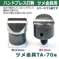 | 品 名:ハンドプレス打駒【ツメ金具TA-70用】 サイズ:上駒 幅22mm高32.0mm軸幅7.9mm :下駒 幅22mm高25mm軸幅19mm 材 質:鉄製 詳 細:上駒1下駒1 2パーツ1セット入 *お断りなく仕様が変更になる場合があります ご注意ください:お手持ちのハンドプレス機によっては、 合わない場合もございます。また、工具類は消耗品のため 開封・未開封に関わらず返品交換いたしかねますので、 ご確認の上、ご購入ください。 当店の工具類は、当店の金具に合わせて作っております。 ご使用の際には、当店の金具をご利用ください。 ●クラフト金具卸のハンドプレス機用打駒 ツメ金具用 紐止めツメ金具をハンドプレス機で取り付けるための打駒です。 ツメ金具は、細くて小さい金具ですが、ハンドプレス機を使うことでシッカリ巻き込み式のきれいな仕上がりとなります。 左右が対象で丸く仕上がる「巻き込み式」の打駒です。打駒とはハンドプレスの治具とも言います。 ツメ金具はペンチを使って留めることができますが、ハンドプレス機に本製品を取付けて使うことで無限のマーク(∞)に近い形状で仕上げることができます。 ●ハンドプレス機でのツメ金具の打ち方・ご注意 1.ハンドプレス機にツメ金具用打駒をセットします。 ハトメ・カシメ打駒とちがい、ツメは点対象の形状ではないため、 レバーを振り下ろしたときに上駒と下駒がガチッと噛み合う用にセットしてください。 2.下駒に紐を通したツメを乗せます。真ん中に、ゴムや紐を押し込めます。 3.ゴム・紐等と金具をセットしたら、上駒をグッと押し込めます。 ハンドプレス機打駒は、ツメ金具を乗せたときにピッタリの形状になるよう造られています。 手応えがしたらレバーを引き上げてください。ツメ金具が丸く折りたたまれてています。 髪留めなどの通常使用ならば十分ご利用いただけますが、「抜け」ない保証はございませんので、必ずご使用の際に強度をご確認いただきますようお願いします。 ●ハンドプレス機は下記です。 ・ハンドプレス機 ●ハンドプレス機打駒は下記です。 ・各種打駒 ●プロ用手打ち工具は下記です。 ・プロ用手打ち工具 ●ホックの大きさは下記です。 ・バネホックはコチラ ・ジャンパーホックはコチラ ・カギホックはコチラ ・ヘリドメホックはコチラ ・マグネットホックはコチラ ・アメリカンホックはコチラ ■クラフト金具卸のハンドプレス打駒 小型のハンドプレス機にセットし、金具に圧力をかけ、取り付けるための先端用部品工具です。上駒と下駒のセットを打駒と呼び、カシメやハトメ、ホックなどの金具にあわせて打駒をご用意しています。 ハンドプレス機を使用すると、力にない方でも比較的簡単で綺麗にハトメなどの金具を取り付けられます。 ●クラフト金具卸のハンドプレス打駒アメリカンホック用 ハンドプレス機をお持ちで、頭径10mmのアメリカンホックを取り付けたいなら、このパーツ。 「打駒アメリカンホック」は、手作業ではうまく打てないホックの取り付けを簡単にしてくれる便利な工具です。お持ちのハンドプレス機にセットするだけで失敗ロス少なく、静かにホックの取り付けすることが可能となります。アメリカンホックの打駒は、3つ組のホックにあわせて3パーツに分かれており、上型、下型、ツメの各パーツに対応します。また、当店の打駒アメリカンホック用は、当店販売のアメリカンホックに合せております。ご使用の際には、当店のアメリカンホックをご利用ください。 |