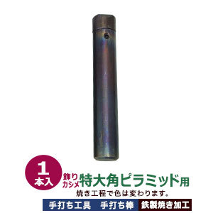 | 品 名:手打ち工具 飾りカシメ【特大角ピラミッド用】 サイズ:手打ち棒 135.8×22.6mm 重さ約387g 材 質:鉄製 焼き加工 詳 細:打棒1本入 ご注意ください:工具類は、消耗品のため開封・未開封に 関わらず返品交換いたしかねますので、 ご確認の上ご購入いただきますようお願い致します。 当店の工具類は、当店の金具に合わせて作っております。 ご使用の際には、当店の金具をご利用ください。 ●プロ用手打ち工具は下記です。 ・プロ用手打ち工具 ・手打ち工具 ●ハトメの大きさは下記です。 ・かけるのハトメはコチラ ・ハトメはコチラ ・両面ハトメはコチラ ・アイレットはコチラ ■クラフト金具卸の手打ち工具 飾りカシメ角ピラミッド用 飾りカシメ角ピラミッド用手打ち工具は、棒の窪みが四角錐になっており、角ピラミッドの頭の形状に合わせて作られています。手打ち工具でキレイに打つには練習が必要です。 ご使用の際には、手を傷めないようご注意ください。 ●角ピラミッドの取り付け方 1.取付ける布や革に、穴あけポンチなどの工具で角ピラミッドの足を通す穴をあける。 *穴の大きさの目安* ・特々小角ピラミッド 約2mm ・特小角ピラミッド 約3mm ・角ピラミッド 約3.5mm ・特大角ピラミッド 約4mm 2.穴を開けた布や革に、角ピラミッドの足を通します。 硬く平らな台(連皿などの裏面)を、を利用して、角ピラミッドの足を台の上にセットします。 3.足の上から布などを挟み、角ピラミッドの頭をかぶせます。 4.角ピラミッドの打棒を、カシメ頭にあてます。カシメ打棒は垂直に立てて木槌を上からしっかり叩いてください。 5.カシメ足が頭の中で潰れ(カシメられ)止まります。 |