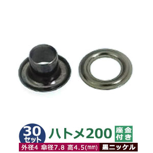 | 足の種類:座金あり 品 名:ハトメ200【ブラック】黒ニッケル サイズ:外径4mm 傘径7.8mm高4.5mm 材 質:真鍮 表面処理:黒ニッケルメッキ加工 詳 細:30セット入 (本体 座金 各30) ●ハトメの大きさは下記です。 ・かけるのハトメはコチラ ・ハトメはコチラ ・両面ハトメはコチラ ・アイレットはコチラ ●ハトメお得セットは下記です。 ・小袋セット ・リーズナブルなお得セット ■クラフト金具卸のハトメ金具 ハトメは、鳩目とも書き、布・革・シート・紙に等あけた穴の補強具として使われます。 補強しようと思う穴の大きさからハトメの内径を選び、布や紙・革の取り付ける物の合計厚みからハトメの高さをお選びください。 特にハトメの「高さ」については、取り付ける物の合計の厚みにプラス+2mm〜3mmした高さを持つハトメを選ばなければ止まりません。 例:高さ5mmのハトメは革・布の厚み合計が3mmないし2mmのものに適します。ただし、材質により止まり具合は異なりますのでご確認ください。 アイレットは、ハトメの大きなものを言い、カーテンのホール、建設現場のテント、シートのロープ通し用の穴などに使われています。 ●当店では、真鍮製のハトメとアルミ製、ステンレス製のハトメを扱っております。 真鍮製のハトメは、安価な鉄製のハトメと違い、鉄錆を始めとする腐食に強いのが特徴です。アルミ製は、真鍮よりも柔らかく軽い仕上がりになります。 ●ハトメの取り付け方 1.ハトメ抜き・穴あけポンチと呼ばれる工具でハトメの足を通す穴(ほぼ内径と同寸法の穴)をあける。 2.その穴にハトメの足を通し、革(布など)を挟む形でハトメ座をあてます。 3.最後にハトメ足を潰します。ハトメ足を潰すには、A.手打棒と皿で手打ちするかB.専用の駒をセットしたハンドプレスで足を潰す2種類の方法があります。手打ち棒と皿で打つ場合は、制作する方の熟達度合いによっても仕上がりは異なります。力の弱い方は、手打ち工具よりもハンドプレス機をおすすめします。 |