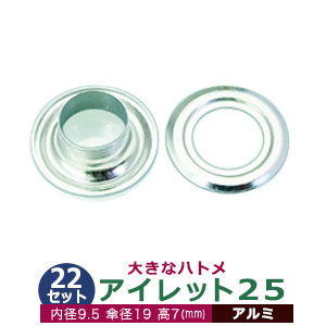 | 足の種類:座金あり 品 名:アイレット25【アルミ】シルバー サイズ:内径9.5mm 傘径19mm高7mm 材 質:アルミ生地 表面処理:アルミ(表面加工無し) 詳 細:22セット入 1セット2パーツ(本体 座金 各22) ご注意ください:お手持ちの工具によっては、 合わない場合もございます。 専用の工具(手打ち棒かハンドプレス)で上からしっかりと叩いてください。 ●ハトメの大きさは下記です。 ・かけるのハトメはコチラ ・ハトメはコチラ ・両面ハトメはコチラ ・アイレットはコチラ ●ハトメお得セットは下記です。 ・小袋セット ・リーズナブルなお得セット ■クラフト金具卸のハトメ金具 ハトメは、鳩目とも書き、布・革・シート・紙に等あけた穴の補強具として使われます。 補強しようと思う穴の大きさからハトメの内径を選び、布や紙・革の取り付ける物の合計厚みからハトメの高さをお選びください。 特にハトメの「高さ」については、取り付ける物の合計の厚みにプラス+2mm〜3mmした高さを持つハトメを選ばなければ止まりません。 例:高さ5mmのハトメは革・布の厚み合計が3mmないし2mmのものに適します。ただし、材質により止まり具合は異なりますのでご確認ください。 アイレットは、ハトメの大きなものを言い、カーテンのホール、建設現場のテント、シートのロープ通し用の穴などに使われています。 ●当店では、真鍮製のハトメとアルミ製、ステンレス製のハトメを扱っております。 真鍮製のハトメは、安価な鉄製のハトメと違い、鉄錆を始めとする腐食に強いのが特徴です。アルミ製は、真鍮よりも柔らかく軽い仕上がりになります。 ●ハトメの取り付け方 1.ハトメ抜き・穴あけポンチと呼ばれる工具でハトメの足を通す穴(ほぼ内径と同寸法の穴)をあける。 2.その穴にハトメの足を通し、革(布など)を挟む形でハトメ座をあてます。 3.最後にハトメ足を潰します。ハトメ足を潰すには、A.手打棒と皿で手打ちするかB.専用の駒をセットしたハンドプレスで足を潰す2種類の方法があります。手打ち棒と皿で打つ場合は、制作する方の熟達度合いによっても仕上がりは異なります。力の弱い方は、手打ち工具よりもハンドプレス機をおすすめします。 |