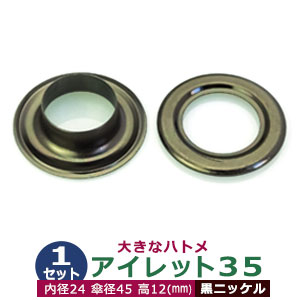 | 足の種類:座金あり 品 名:アイレット35【ブラック】黒ニッケル サイズ:内径24mm 傘径45mm高12mm 材 質:真鍮 表面処理:黒ニッケルメッキ加工 詳 細:1セット入1袋 ご注意ください:お手持ちの工具によっては、 合わない場合もございます。 ●ハトメの大きさは下記です。 ・かけるのハトメはコチラ ・ハトメはコチラ ・両面ハトメはコチラ ・アイレットはコチラ ●ハトメお得セットは下記です。 ・小袋セット ・リーズナブルなお得セット ■クラフト金具卸のハトメ金具 ハトメは、鳩目とも書き、布・革・シート・紙に等あけた穴の補強具として使われます。 補強しようと思う穴の大きさからハトメの内径を選び、布や紙・革の取り付ける物の合計厚みからハトメの高さをお選びください。 特にハトメの「高さ」については、取り付ける物の合計の厚みにプラス+2mm〜3mmした高さを持つハトメを選ばなければ止まりません。 例:高さ5mmのハトメは革・布の厚み合計が3mmないし2mmのものに適します。ただし、材質により止まり具合は異なりますのでご確認ください。 アイレットは、ハトメの大きなものを言い、カーテンのホール、建設現場のテント、シートのロープ通し用の穴などに使われています。 ●当店では、真鍮製のハトメとアルミ製、ステンレス製のハトメを扱っております。 真鍮製のハトメは、安価な鉄製のハトメと違い、鉄錆を始めとする腐食に強いのが特徴です。アルミ製は、真鍮よりも柔らかく軽い仕上がりになります。 ●ハトメの取り付け方 1.ハトメ抜き・穴あけポンチと呼ばれる工具でハトメの足を通す穴(ほぼ内径と同寸法の穴)をあける。 2.その穴にハトメの足を通し、革(布など)を挟む形でハトメ座をあてます。 3.最後にハトメ足を潰します。ハトメ足を潰すには、A.手打棒と皿で手打ちするかB.専用の駒をセットしたハンドプレスで足を潰す2種類の方法があります。手打ち棒と皿で打つ場合は、制作する方の熟達度合いによっても仕上がりは異なります。力の弱い方は、手打ち工具よりもハンドプレス機をおすすめします。 |