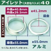 | 足の種類:座金あり 品 名:アイレット40【アルミ】シルバー サイズ:内径40mm 傘径55mm高12mm 材 質:アルミ 表面処理:アルミ生地(加工無し) 詳 細:2セット入1袋 ご注意ください:お手持ちの工具によっては、 合わない場合もございます。 ●ハトメの大きさは下記です。 ・かけるのハトメはコチラ ・ハトメはコチラ ・両面ハトメはコチラ ・アイレットはコチラ ●ハトメお得セットは下記です。 ・小袋セット ・リーズナブルなお得セット ■クラフト金具卸のハトメ金具 ハトメは、鳩目とも書き、布・革・シート・紙に等あけた穴の補強具として使われます。 補強しようと思う穴の大きさからハトメの内径を選び、布や紙・革の取り付ける物の合計厚みからハトメの高さをお選びください。 特にハトメの「高さ」については、取り付ける物の合計の厚みにプラス+2mm〜3mmした高さを持つハトメを選ばなければ止まりません。 例:高さ5mmのハトメは革・布の厚み合計が3mmないし2mmのものに適します。ただし、材質により止まり具合は異なりますのでご確認ください。 アイレットは、ハトメの大きなものを言い、カーテンのホール、建設現場のテント、シートのロープ通し用の穴などに使われています。 ●当店では、真鍮製のハトメとアルミ製、ステンレス製のハトメを扱っております。 真鍮製のハトメは、安価な鉄製のハトメと違い、鉄錆を始めとする腐食に強いのが特徴です。アルミ製は、真鍮よりも柔らかく軽い仕上がりになります。 ●ハトメの取り付け方 1.ハトメ抜き・穴あけポンチと呼ばれる工具でハトメの足を通す穴(ほぼ内径と同寸法の穴)をあける。 2.その穴にハトメの足を通し、革(布など)を挟む形でハトメ座をあてます。 3.最後にハトメ足を潰します。ハトメ足を潰すには、A.手打棒と皿で手打ちするかB.専用の駒をセットしたハンドプレスで足を潰す2種類の方法があります。手打ち棒と皿で打つ場合は、制作する方の熟達度合いによっても仕上がりは異なります。力の弱い方は、手打ち工具よりもハンドプレス機をおすすめします。 |