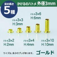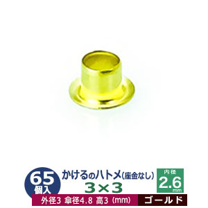 | 足の種類:座金なし本体のみ 品 名:かけるのハトメ3X3【ゴールド】 サイズ:外径3mm 高3mm 内径2.6mm 傘径4.8mm 材 質:真鍮 表面処理:『キリンス処理』 *酸洗いで真鍮本来の色を生かした処理をしています。 表面に黒い斑点が残る場合があります。 詳 細:65コ入り1袋 ●ハトメの大きさは下記です。 ・かけるのハトメはコチラ ・ハトメはコチラ ・両面ハトメはコチラ ・アイレットはコチラ ●ハトメお得セットは下記です。 ・小袋セット ・リーズナブルなお得セット ■クラフト金具卸のハトメ金具 ハトメは、鳩目とも書き、布・革・シート・紙に等あけた穴の補強具として使われます。 補強しようと思う穴の大きさからハトメの内径を選び、布や紙・革の取り付ける物の合計厚みからハトメの高さをお選びください。 特にハトメの「高さ」については、取り付ける物の合計の厚みにプラス+2mm〜3mmした高さを持つハトメを選ばなければ止まりません。 例:高さ5mmのハトメは革・布の厚み合計が3mmないし2mmのものに適します。ただし、材質により止まり具合は異なりますのでご確認ください。 アイレットは、ハトメの大きなものを言い、カーテンのホール、建設現場のテント、シートのロープ通し用の穴などに使われています。 ●当店では、真鍮製のハトメとアルミ製、ステンレス製のハトメを扱っております。 真鍮製のハトメは、安価な鉄製のハトメと違い、鉄錆を始めとする腐食に強いのが特徴です。アルミ製は、真鍮よりも柔らかく軽い仕上がりになります。 ●ハトメの取り付け方 1.ハトメ抜き・穴あけポンチと呼ばれる工具でハトメの足を通す穴(ほぼ内径と同寸法の穴)をあける。 2.その穴にハトメの足を通し、革(布など)を挟む形でハトメ座をあてます。 3.最後にハトメ足を潰します。ハトメ足を潰すには、A.手打棒と皿で手打ちするかB.専用の駒をセットしたハンドプレスで足を潰す2種類の方法があります。手打ち棒と皿で打つ場合は、制作する方の熟達度合いによっても仕上がりは異なります。力の弱い方は、手打ち工具よりもハンドプレス機をおすすめします。 |