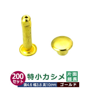 | 足の種類:片面超長足 品 名:特小カシメ【ゴールド】キリンス サイズ:頭4.6mm 幅3.8mm 高10mm 材 質:真鍮 表面処理:『キリンス処理』 *酸洗いで真鍮本来の色を生かした処理をしています。 表面に黒い斑点が残る場合があります。 詳 細:200セット(頭足 各200)入り1袋 専用の工具(手打ち棒かハンドプレス)で上からしっかりと叩いてください。 ■カシメを選ぶときの目安 1.カシメ頭の大きさを選ぶ カシメの種類によって、頭の大きさが違います。 (ミニカシメ、特小カシメ、 小カシメ、中カシメ、 大カシメ、特大カシメ) 2.カシメ足の(両面/片面)を選ぶ カシメの足には「両面」「片面」があり、裏面の外観が異なります。 【片面カシメの場合】裏面(表出する金具部分)がドーナッツのように穴があきます。厚みがあまり出ないため、平たく仕上げたい時に使います。 【両面カシメの場合】裏面(表出する金具部分)が丸みを帯びた丸釦で表面と同じ様に仕上ります。やや厚みが出ます。 3.カシメ足の長さを選ぶ 取り付ける布や革の厚みによって「短足」「並足」「長足」と足の長さをお選びください。 【片面カシメの場合】 取り付ける革(布)の厚み合計+2mm=最適なカシメの足の長さ 【両面カシメの場合】 取り付ける革(布)の厚み合計+3mm=最適なカシメの足の長さ ●カシメの大きさは下記です。 ・ミニカシメはコチラ ・特小カシメはコチラ ・小カシメはコチラ ・中カシメはコチラ ・大カシメはコチラ ・特大カシメはコチラ ●カシメお得セットは下記です。 ・小袋セット ・リーズナブルなお得セット ●その他カシメは下記です。 ・飾りカシメはコチラ ・ライトストーンはコチラ ・ターコイズはコチラ ・底鋲半丸カシメはコチラ ■クラフト金具卸のカシメ金具 カシメは頭(メス)と足(オス)で一対、布や革を止める金具です。 布や革に、カシメの足を通る穴(多くは2mmないし3mm)をあけ、挟みこむようにして頭をかぶせ、足を潰してカシメをとめます。 リベットやハトメと違い、カシメは足がクルッとヒックリ返るわけではありません。 被せた頭の中で足がグシャッと潰れ止まっています。 「カシメがすぐ外れます」とのご質問いただくことがありますが、それはカシメている(足を潰している)のではなく、ただ挟んで頭を被せているだけの状態だからです。 足が潰れていない状態は「カシメている」になりません。 専用の工具(手打ち棒かハンドプレス)で上からしっかりと叩いてください。 |