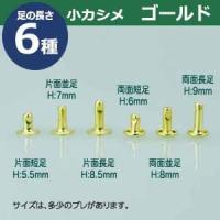 | 足の種類:両面長足 品 名:小カシメ【ゴールド】キリンス サイズ:頭6mm 幅6mm 高9mm 材 質:真鍮 表面処理:『キリンス処理』 *酸洗いで真鍮本来の色を生かした処理をしています。 表面に黒い斑点が残る場合があります。 詳 細:10セット(頭 足 各10)入り1袋 厚み合計6mm以下の革や布に小カシメを打つ場合におすすめのカシメです。 取り付ける対象の厚さを必ずご確認ください。 小カシメは頭の径が6mmの文具や雑貨、鞄などに多用されているカシメです。 専用の工具(手打ち棒かハンドプレス)で上からしっかりと叩いてください。 ■カシメを選ぶときの目安 1.カシメ頭の大きさを選ぶ カシメの種類によって、頭の大きさが違います。 (ミニカシメ、特小カシメ、 小カシメ、中カシメ、 大カシメ、特大カシメ) 2.カシメ足の(両面/片面)を選ぶ カシメの足には「両面」「片面」があり、裏面の外観が異なります。 【片面カシメの場合】裏面(表出する金具部分)がドーナッツのように穴があきます。厚みがあまり出ないため、平たく仕上げたい時に使います。 【両面カシメの場合】裏面(表出する金具部分)が丸みを帯びた丸釦で表面と同じ様に仕上ります。やや厚みが出ます。 3.カシメ足の長さを選ぶ 取り付ける布や革の厚みによって「短足」「並足」「長足」と足の長さをお選びください。 【片面カシメの場合】 取り付ける革(布)の厚み合計+2mm=最適なカシメの足の長さ 【両面カシメの場合】 取り付ける革(布)の厚み合計+3mm=最適なカシメの足の長さ ●カシメの大きさは下記です。 ・ミニカシメはコチラ ・特小カシメはコチラ ・小カシメはコチラ ・中カシメはコチラ ・大カシメはコチラ ・特大カシメはコチラ ●カシメお得セットは下記です。 ・小袋セット ・リーズナブルなお得セット ●その他カシメは下記です。 ・飾りカシメはコチラ ・ライトストーンはコチラ ・ターコイズはコチラ ・底鋲半丸カシメはコチラ ■クラフト金具卸のカシメ金具 カシメは頭(メス)と足(オス)で一対、布や革を止める金具です。 布や革に、カシメの足を通る穴(多くは2mmないし3mm)をあけ、挟みこむようにして頭をかぶせ、足を潰してカシメをとめます。 リベットやハトメと違い、カシメは足がクルッとヒックリ返るわけではありません。 被せた頭の中で足がグシャッと潰れ止まっています。 「カシメがすぐ外れます」とのご質問いただくことがありますが、それはカシメている(足を潰している)のではなく、ただ挟んで頭を被せているだけの状態だからです。 足が潰れていない状態は「カシメている」になりません。 専用の工具(手打ち棒かハンドプレス)で上からしっかりと叩いてください。 |