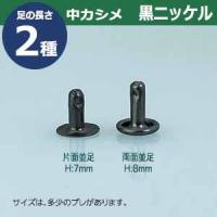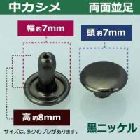 | 足の種類:両面並足 品 名:中カシメ 両面並足 7mm【ブラック】黒ニッケル サイズ:頭7mm 幅7mm 高8mm 材 質:真鍮 メッキ:黒ニッケルメッキ加工 詳 細:7セット(頭 足 各7)入り1袋 頭の直径が7mmの使いやすいサイズの中カシメです。 両面足ですので、裏表同じように仕上がります。取付けた際には革の表側には7mmの頭、革の裏側には7mmの足傘(頭と同じような形)が出ます。 足傘含めた足の長さが8mmですので、合計厚み5mm程度の布や革に最適です。 ■カシメを選ぶときの目安 1.カシメ頭の大きさを選ぶ カシメの種類によって、頭の大きさが違います。 (ミニカシメ、特小カシメ、 小カシメ、中カシメ、 大カシメ、特大カシメ) 2.カシメ足の(両面/片面)を選ぶ カシメの足には「両面」「片面」があり、裏面の外観が異なります。 【片面カシメの場合】裏面(表出する金具部分)がドーナッツのように穴があきます。厚みがあまり出ないため、平たく仕上げたい時に使います。 【両面カシメの場合】裏面(表出する金具部分)が丸みを帯びた丸釦で表面と同じ様に仕上ります。やや厚みが出ます。 3.カシメ足の長さを選ぶ 取り付ける布や革の厚みによって「短足」「並足」「長足」と足の長さをお選びください。 【片面カシメの場合】 取り付ける革(布)の厚み合計+2mm=最適なカシメの足の長さ 【両面カシメの場合】 取り付ける革(布)の厚み合計+3mm=最適なカシメの足の長さ ●カシメの大きさは下記です。 ・ミニカシメはコチラ ・特小カシメはコチラ ・小カシメはコチラ ・中カシメはコチラ ・大カシメはコチラ ・特大カシメはコチラ ●カシメお得セットは下記です。 ・小袋セット ・リーズナブルなお得セット ●その他カシメは下記です。 ・飾りカシメはコチラ ・ライトストーンはコチラ ・ターコイズはコチラ ・底鋲半丸カシメはコチラ ■クラフト金具卸のカシメ金具 カシメは頭(メス)と足(オス)で一対、布や革を止める金具です。 布や革に、カシメの足を通る穴(多くは2mmないし3mm)をあけ、挟みこむようにして頭をかぶせ、足を潰してカシメをとめます。 リベットやハトメと違い、カシメは足がクルッとヒックリ返るわけではありません。 被せた頭の中で足がグシャッと潰れ止まっています。 「カシメがすぐ外れます」とのご質問いただくことがありますが、それはカシメている(足を潰している)のではなく、ただ挟んで頭を被せているだけの状態だからです。 足が潰れていない状態は「カシメている」になりません。 専用の工具(手打ち棒かハンドプレス)で上からしっかりと叩いてください。 |