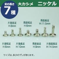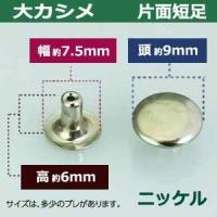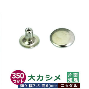 足の種類:片面短足 品 名:大カシメ サイズ:頭9mm 幅7.5mm 高6mm 材 質:真鍮 メッキ:ニッケル 詳 細:350セット入り1袋 ■カシメを選ぶときの目安 1.カシメ頭の大きさを選ぶ カシメの種類によって、頭の大きさが違います。 (ミニカシメ、特小カシメ、 小カシメ、中カシメ、 大カシメ、特大カシメ) 2.カシメ足の(両面/片面)を選ぶ カシメの足には「両面」「片面」があり、裏面の外観が異なります。 【片面カシメの場合】裏面(表出する金具部分)がドーナッツのように穴があきます。厚みがあまり出ないため、平たく仕上げたい時に使います。 【両面カシメの場合】裏面(表出する金具部分)が丸みを帯びた丸釦で表面と同じ様に仕上ります。やや厚みが出ます。 3.カシメ足の長さを選ぶ 取り付ける布や革の厚みによって「短足」「並足」「長足」と足の長さをお選びください。 【片面カシメの場合】 取り付ける革(布)の厚み合計+2mm=最適なカシメの足の長さ 【両面カシメの場合】 取り付ける革(布)の厚み合計+3mm=最適なカシメの足の長さ ●カシメの大きさは下記です。 ・ミニカシメはコチラ ・特小カシメはコチラ ・小カシメはコチラ ・中カシメはコチラ ・大カシメはコチラ ・特大カシメはコチラ ●カシメお得セットは下記です。 ・小袋セット ・リーズナブルなお得セット ●その他カシメは下記です。 ・飾りカシメはコチラ ・ライトストーンはコチラ ・ターコイズはコチラ ・底鋲半丸カシメはコチラ ■クラフト金具卸のカシメ金具 カシメは頭(メス)と足(オス)で一対、布や革を止める金具です。 布や革に、カシメの足を通る穴(多くは2mmないし3mm)をあけ、挟みこむようにして頭をかぶせ、足を潰してカシメをとめます。 リベットやハトメと違い、カシメは足がクルッとヒックリ返るわけではありません。 被せた頭の中で足がグシャッと潰れ止まっています。 「カシメがすぐ外れます」とのご質問いただくことがありますが、それはカシメている(足を潰している)のではなく、ただ挟んで頭を被せているだけの状態だからです。 足が潰れていない状態は「カシメている」になりません。 専用の工具(手打ち棒かハンドプレス)で上からしっかりと叩いてください。 |