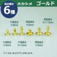 | 足の種類:両面並足 品 名:大カシメ 9mm 両面 並足 【ゴールド】キリンス サイズ:頭9mm 幅9mm 高9mm 材 質:真鍮 表面処理:『キリンス処理』 *酸洗いで真鍮本来の色を生かした処理をしています。 表面に黒い斑点が残る場合があります。 詳 細: 8セット(頭 足 各8)入り1袋 頭の直径9mmのドッシリした大カシメは、洋服や鞄などに多用されるサイズです。 両面タイプですから、取付けた際には表に直径9mmの頭、裏には9mmの丸みを帯びた足傘が出て、裏表ほぼ同じ仕上がりになります。足の長さは、標準的な並足9mmですので、革や布の合計の厚みが6mm程度の布や革にお使いください。 ■カシメを選ぶときの目安 1.カシメ頭の大きさを選ぶ カシメの種類によって、頭の大きさが違います。 (ミニカシメ、特小カシメ、 小カシメ、中カシメ、 大カシメ、特大カシメ) 2.カシメ足の(両面/片面)を選ぶ カシメの足には「両面」「片面」があり、裏面の外観が異なります。 【片面カシメの場合】裏面(表出する金具部分)がドーナッツのように穴があきます。厚みがあまり出ないため、平たく仕上げたい時に使います。 【両面カシメの場合】裏面(表出する金具部分)が丸みを帯びた丸釦で表面と同じ様に仕上ります。やや厚みが出ます。 3.カシメ足の長さを選ぶ 取り付ける布や革の厚みによって「短足」「並足」「長足」と足の長さをお選びください。 【片面カシメの場合】 取り付ける革(布)の厚み合計+2mm=最適なカシメの足の長さ 【両面カシメの場合】 取り付ける革(布)の厚み合計+3mm=最適なカシメの足の長さ ●カシメの大きさは下記です。 ・ミニカシメはコチラ ・特小カシメはコチラ ・小カシメはコチラ ・中カシメはコチラ ・大カシメはコチラ ・特大カシメはコチラ ●カシメお得セットは下記です。 ・小袋セット ・リーズナブルなお得セット ●その他カシメは下記です。 ・飾りカシメはコチラ ・ライトストーンはコチラ ・ターコイズはコチラ ・底鋲半丸カシメはコチラ ■クラフト金具卸のカシメ金具 カシメは頭(メス)と足(オス)で一対、布や革を止める金具です。 布や革に、カシメの足を通る穴(多くは2mmないし3mm)をあけ、挟みこむようにして頭をかぶせ、足を潰してカシメをとめます。 リベットやハトメと違い、カシメは足がクルッとヒックリ返るわけではありません。 被せた頭の中で足がグシャッと潰れ止まっています。 「カシメがすぐ外れます」とのご質問いただくことがありますが、それはカシメている(足を潰している)のではなく、ただ挟んで頭を被せているだけの状態だからです。 足が潰れていない状態は「カシメている」になりません。 専用の工具(手打ち棒かハンドプレス)で上からしっかりと叩いてください。 |