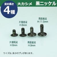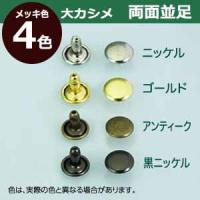 | 足の種類:両面並足 品 名:大カシメ 9mm 両面 並足 【ブラック】黒ニッケル サイズ:頭9mm 幅9mm 高9mm 材 質:真鍮 メッキ:黒ニッケルメッキ加工 詳 細:7セット(頭 足 各7)入り1袋 頭の直径9mmのドッシリした大カシメは、洋服や鞄などに多用されるサイズです。 両面タイプですから、取付けた際には表に直径9mmの頭、裏には9mmの丸みを帯びた足傘が出て、裏表ほぼ同じ仕上がりになります。足の長さは、標準的な並足9mmですので、革や布の合計の厚みが6mm程度の布や革にお使いください。 ■カシメを選ぶときの目安 1.カシメ頭の大きさを選ぶ カシメの種類によって、頭の大きさが違います。 (ミニカシメ、特小カシメ、 小カシメ、中カシメ、 大カシメ、特大カシメ) 2.カシメ足の(両面/片面)を選ぶ カシメの足には「両面」「片面」があり、裏面の外観が異なります。 【片面カシメの場合】裏面(表出する金具部分)がドーナッツのように穴があきます。厚みがあまり出ないため、平たく仕上げたい時に使います。 【両面カシメの場合】裏面(表出する金具部分)が丸みを帯びた丸釦で表面と同じ様に仕上ります。やや厚みが出ます。 3.カシメ足の長さを選ぶ 取り付ける布や革の厚みによって「短足」「並足」「長足」と足の長さをお選びください。 【片面カシメの場合】 取り付ける革(布)の厚み合計+2mm=最適なカシメの足の長さ 【両面カシメの場合】 取り付ける革(布)の厚み合計+3mm=最適なカシメの足の長さ ●カシメの大きさは下記です。 ・ミニカシメはコチラ ・特小カシメはコチラ ・小カシメはコチラ ・中カシメはコチラ ・大カシメはコチラ ・特大カシメはコチラ ●カシメお得セットは下記です。 ・小袋セット ・リーズナブルなお得セット ●その他カシメは下記です。 ・飾りカシメはコチラ ・ライトストーンはコチラ ・ターコイズはコチラ ・底鋲半丸カシメはコチラ ■クラフト金具卸のカシメ金具 カシメは頭(メス)と足(オス)で一対、布や革を止める金具です。 布や革に、カシメの足を通る穴(多くは2mmないし3mm)をあけ、挟みこむようにして頭をかぶせ、足を潰してカシメをとめます。 リベットやハトメと違い、カシメは足がクルッとヒックリ返るわけではありません。 被せた頭の中で足がグシャッと潰れ止まっています。 「カシメがすぐ外れます」とのご質問いただくことがありますが、それはカシメている(足を潰している)のではなく、ただ挟んで頭を被せているだけの状態だからです。 足が潰れていない状態は「カシメている」になりません。 専用の工具(手打ち棒かハンドプレス)で上からしっかりと叩いてください。 |