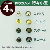 | 頭の形:半玉状 品 名:飾り玉カシメ 特々小玉カシメ サイズ:頭4.6mm 幅5mm 高5mm 材 質:真鍮 メッキ:ゴールド 詳 細:12セット入り1袋 ●カシメの大きさは下記です。 ・ミニカシメはコチラ ・特小カシメはコチラ ・小カシメはコチラ ・中カシメはコチラ ・大カシメはコチラ ・特大カシメはコチラ ●カシメお得セットは下記です。 ・小袋セット ・リーズナブルなお得セット ●その他カシメは下記です。 ・飾りカシメはコチラ ・ライトストーンはコチラ ・ターコイズはコチラ ・底鋲半丸カシメはコチラ ■クラフト金具卸のカシメ金具 カシメは頭(メス)と足(オス)で一対、布や革を止める金具です。 一般的に「飾りカシメ」と呼ばれるものはカシメの頭が変わった形になっており、革や布などに取り付けた時そのユニークな形状が全体の中のアクセントになるようなカシメです。カシメの足の部分は普通カシメでも代用が効きます。取り付ける布や革の厚さに対して飾りカシメの付属の足では足りない場合は別途ご購入ください。取り付ける革の合計の厚みより最低2mmは長い足を目安にお選びください。飾りカシメは玉カシメ、丸ピラミッド、プリン、角ピラミッドのほかに鞄などの底に使う底鋲カシメを取り扱っております 専用の工具(手打ち棒かハンドプレス)で上からしっかりと叩いてください。 |