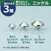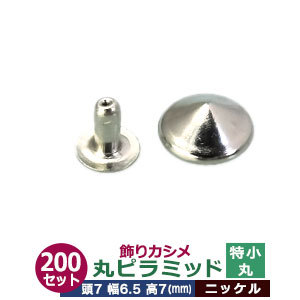 | 頭の形:円錐形状 品 名:飾りカシメ 特小丸ピラミッド サイズ:頭7mm 幅6.5mm 高7mm 材 質:真鍮 メッキ:ニッケル 詳 細:200セット入り1袋 ●カシメの大きさは下記です。 ・ミニカシメはコチラ ・特小カシメはコチラ ・小カシメはコチラ ・中カシメはコチラ ・大カシメはコチラ ・特大カシメはコチラ ●カシメお得セットは下記です。 ・小袋セット ・リーズナブルなお得セット ●その他カシメは下記です。 ・飾りカシメはコチラ ・ライトストーンはコチラ ・ターコイズはコチラ ・底鋲半丸カシメはコチラ ■クラフト金具卸のカシメ金具 カシメは頭(メス)と足(オス)で一対、布や革を止める金具です。 一般的に「飾りカシメ」と呼ばれるものはカシメの頭が変わった形になっており、革や布などに取り付けた時そのユニークな形状が全体の中のアクセントになるようなカシメです。カシメの足の部分は普通カシメでも代用が効きます。取り付ける布や革の厚さに対して飾りカシメの付属の足では足りない場合は別途ご購入ください。取り付ける革の合計の厚みより最低2mmは長い足を目安にお選びください。飾りカシメは玉カシメ、丸ピラミッド、プリン、角ピラミッドのほかに鞄などの底に使う底鋲カシメを取り扱っております 専用の工具(手打ち棒かハンドプレス)で上からしっかりと叩いてください。 |