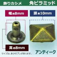 | 頭の形:四角錐形状 品 名:飾りカシメ 角ピラミッド サイズ:頭10mm 幅8mm 高8mm 材 質:真鍮 メッキ:アンティーク 詳 細:140セット入り1袋 ●カシメの大きさは下記です。 ・ミニカシメはコチラ ・特小カシメはコチラ ・小カシメはコチラ ・中カシメはコチラ ・大カシメはコチラ ・特大カシメはコチラ ●カシメお得セットは下記です。 ・小袋セット ・リーズナブルなお得セット ●その他カシメは下記です。 ・飾りカシメはコチラ ・ライトストーンはコチラ ・ターコイズはコチラ ・底鋲半丸カシメはコチラ ■クラフト金具卸のカシメ金具 カシメは頭(メス)と足(オス)で一対、布や革を止める金具です。 一般的に「飾りカシメ」と呼ばれるものはカシメの頭が変わった形になっており、革や布などに取り付けた時そのユニークな形状が全体の中のアクセントになるようなカシメです。カシメの足の部分は普通カシメでも代用が効きます。取り付ける布や革の厚さに対して飾りカシメの付属の足では足りない場合は別途ご購入ください。取り付ける革の合計の厚みより最低2mmは長い足を目安にお選びください。飾りカシメは玉カシメ、丸ピラミッド、プリン、角ピラミッドのほかに鞄などの底に使う底鋲カシメを取り扱っております 専用の工具(手打ち棒かハンドプレス)で上からしっかりと叩いてください。 |