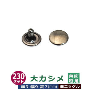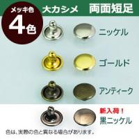| 足の種類:両面短足 品 名:大カシメ サイズ:頭9mm 幅9mm 高7mm 材 質:真鍮 メッキ:黒ニッケル 詳 細:230セット入り1袋 ■カシメを選ぶときの目安 1.カシメ頭の大きさを選ぶ カシメの種類によって、頭の大きさが違います。 (ミニカシメ、特小カシメ、 小カシメ、中カシメ、 大カシメ、特大カシメ) 2.カシメ足の(両面/片面)を選ぶ カシメの足には「両面」「片面」があり、裏面の外観が異なります。 【片面カシメの場合】裏面(表出する金具部分)がドーナッツのように穴があきます。厚みがあまり出ないため、平たく仕上げたい時に使います。 【両面カシメの場合】裏面(表出する金具部分)が丸みを帯びた丸釦で表面と同じ様に仕上ります。やや厚みが出ます。 3.カシメ足の長さを選ぶ 取り付ける布や革の厚みによって「短足」「並足」「長足」と足の長さをお選びください。 【片面カシメの場合】 取り付ける革(布)の厚み合計+2mm=最適なカシメの足の長さ 【両面カシメの場合】 取り付ける革(布)の厚み合計+3mm=最適なカシメの足の長さ ●カシメの大きさは下記です。 ・ミニカシメはコチラ ・特小カシメはコチラ ・小カシメはコチラ ・中カシメはコチラ ・大カシメはコチラ ・特大カシメはコチラ ●カシメお得セットは下記です。 ・小袋セット ・リーズナブルなお得セット ●その他カシメは下記です。 ・飾りカシメはコチラ ・ライトストーンはコチラ ・ターコイズはコチラ ・底鋲半丸カシメはコチラ ■クラフト金具卸のカシメ金具 カシメは頭(メス)と足(オス)で一対、布や革を止める金具です。 布や革に、カシメの足を通る穴(多くは2mmないし3mm)をあけ、挟みこむようにして頭をかぶせ、足を潰してカシメをとめます。 リベットやハトメと違い、カシメは足がクルッとヒックリ返るわけではありません。 被せた頭の中で足がグシャッと潰れ止まっています。 「カシメがすぐ外れます」とのご質問いただくことがありますが、それはカシメている(足を潰している)のではなく、ただ挟んで頭を被せているだけの状態だからです。 足が潰れていない状態は「カシメている」になりません。 専用の工具(手打ち棒かハンドプレス)で上からしっかりと叩いてください。 |