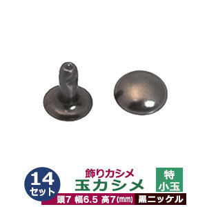 | 頭の形:半玉状 品 名:飾り玉カシメ 特小玉カシメ サイズ:頭7mm 幅6.5mm 高7mm 材 質:真鍮 メッキ:黒ニッケル 詳 細:14セット入り1袋 ●カシメの大きさは下記です。 ・ミニカシメはコチラ ・特小カシメはコチラ ・小カシメはコチラ ・中カシメはコチラ ・大カシメはコチラ ・特大カシメはコチラ ●カシメお得セットは下記です。 ・小袋セット ・リーズナブルなお得セット ●その他カシメは下記です。 ・飾りカシメはコチラ ・ライトストーンはコチラ ・ターコイズはコチラ ・底鋲半丸カシメはコチラ ■クラフト金具卸のカシメ金具 カシメは頭(メス)と足(オス)で一対、布や革を止める金具です。 一般的に「飾りカシメ」と呼ばれるものはカシメの頭が変わった形になっており、革や布などに取り付けた時そのユニークな形状が全体の中のアクセントになるようなカシメです。カシメの足の部分は普通カシメでも代用が効きます。取り付ける布や革の厚さに対して飾りカシメの付属の足では足りない場合は別途ご購入ください。取り付ける革の合計の厚みより最低2mmは長い足を目安にお選びください。飾りカシメは玉カシメ、丸ピラミッド、プリン、角ピラミッドのほかに鞄などの底に使う底鋲カシメを取り扱っております 専用の工具(手打ち棒かハンドプレス)で上からしっかりと叩いてください。 |