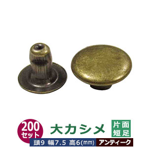 | 足の種類:片面短足 品 名:大カシメ サイズ:頭9mm 幅7.5mm 高6mm 材 質:真鍮 メッキ:ニッケル 詳 細:200セット入(足 頭 各200) 大カシメはどっしりした存在感ある頭の直径9mmのカシメ!鞄や雑貨、服飾金具として多用されるサイズで、足が短いので4mm程度の薄い布や革に最適です。片面足タイプは、足傘が平らですから裏面を袋状にして裏面処理を隠す場合にお勧め。です。 取付けた際には革の表側には9mmの頭が、革の裏側には9mmの穴の開いたドーナッツ型の足傘が出ますが、裏表同じように仕上げたい場合は大カシメ両面短足をお使いください。 ■カシメを選ぶときの目安 1.カシメ頭の大きさを選ぶ カシメの種類によって、頭の大きさが違います。 (ミニカシメ、特小カシメ、 小カシメ、中カシメ、 大カシメ、特大カシメ) 2.カシメ足の(両面/片面)を選ぶ カシメの足には「両面」「片面」があり、裏面の外観が異なります。 【片面カシメの場合】裏面(表出する金具部分)がドーナッツのように穴があきます。厚みがあまり出ないため、平たく仕上げたい時に使います。 【両面カシメの場合】裏面(表出する金具部分)が丸みを帯びた丸釦で表面と同じ様に仕上ります。やや厚みが出ます。 3.カシメ足の長さを選ぶ 取り付ける布や革の厚みによって「短足」「並足」「長足」と足の長さをお選びください。 【片面カシメの場合】 取り付ける革(布)の厚み合計+2mm=最適なカシメの足の長さ 【両面カシメの場合】 取り付ける革(布)の厚み合計+3mm=最適なカシメの足の長さ ●カシメの大きさは下記です。 ・ミニカシメはコチラ ・特小カシメはコチラ ・小カシメはコチラ ・中カシメはコチラ ・大カシメはコチラ ・特大カシメはコチラ ●カシメお得セットは下記です。 ・小袋セット ・リーズナブルなお得セット ●その他カシメは下記です。 ・飾りカシメはコチラ ・ライトストーンはコチラ ・ターコイズはコチラ ・底鋲半丸カシメはコチラ ■クラフト金具卸のカシメ金具 カシメは頭(メス)と足(オス)で一対、布や革を止める金具です。 布や革に、カシメの足を通る穴(多くは2mmないし3mm)をあけ、挟みこむようにして頭をかぶせ、足を潰してカシメをとめます。 リベットやハトメと違い、カシメは足がクルッとヒックリ返るわけではありません。 被せた頭の中で足がグシャッと潰れ止まっています。 「カシメがすぐ外れます」とのご質問いただくことがありますが、それはカシメている(足を潰している)のではなく、ただ挟んで頭を被せているだけの状態だからです。 足が潰れていない状態は「カシメている」になりません。 専用の工具(手打ち棒かハンドプレス)で上からしっかりと叩いてください。 |