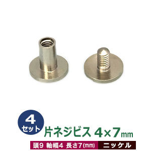 | 品 名:片ネジ式ビス4X7mm【ニッケル】 サイズ:頭9mm 太さ4mm 長さ7mm 材 質:真鍮製 メッキ:ニッケル 詳 細:4セット1袋 セット内容:1セットは2つのパーツ【片ネジ式ビスオス(オスは、他の各長さのものと共通です。)・メス】で一組です。 ◆片ネジ式ビス 片ネジ式ビスは、頭(メス)と足(オス)で一対、ネジ式の留め金具です。 各種見本帖や、増やすアルバムなどによく使われています。片ネジ式ビスは取付けがネジ式となってり、取り付けに工具が必要ありません。またネジ式ですので何度も取外して使えます。 片ネジ式ビス ご使用時の注意点 ・ネジビスの軸径は約4mm(3.9mm程度)です。取り付け対象にあけておく穴は、4mm以上必要となります。 ・また、カシメと違いネジビスは足を潰さないので、取り付け対象よりも短い足を選ぶ必要があります。 例えば厚さ5mmのものを止めたい時、カシメでは、止める布や革、紙の厚さよりも長い足を選びますが、ビスは5mmないし4mmのものを使わないと足があまって浮いてしまいます。ご使用時に、ビスの長さを十分にご確認ください。 ●片ネジ式ビスの大きさは下記です。 ・バインダー金具はコチラ ・隅がねはコチラ ・用箋挟はコチラ ・片ネジ式ビスはコチラ ・中空リベットはコチラ ●片ネジ式ビスお得セットは下記です。 ・小袋セット ・リーズナブルなお得セット ●その他、カシメ・ハトメは下記です。 ・カシメはコチラ ・ハトメはコチラ ■クラフト金具卸の装丁金具 ・バインダー金具 手帳用リフィルや、事務用のファイル・ルーズリーフ等を通すバインダー金具の本体です。 ・用箋挟(クリップボード金具) クリップボード用の金具です。 ・隅がね 手帳や、本の表紙の隅に噛ませて角を保護します。コーナー金具とも呼ばれます。 ・片ネジ式ビス オス(足)の方がネジ式になっている何度でも取り外し使える鋲です。 ・中空リベット 中空鋲とも呼ばれる市販バインダー金具の留めに使われている軽いアルミ製鋲です。 |