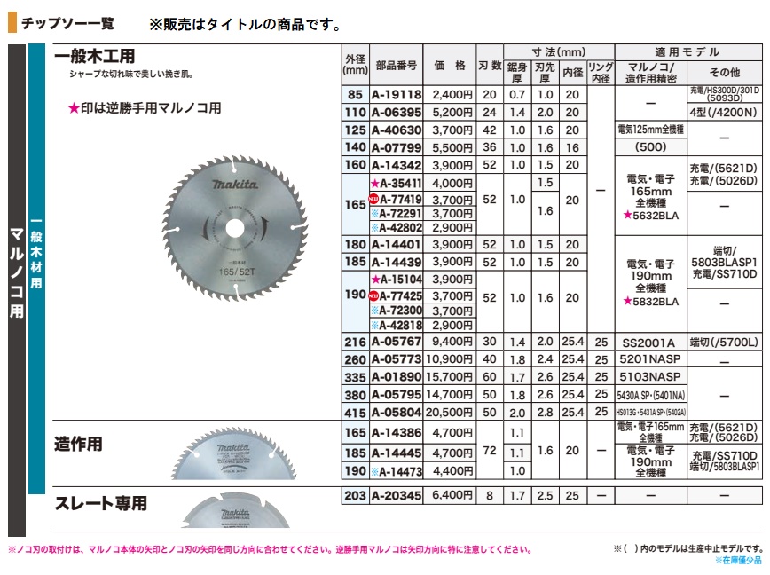 特価 マキタ A-77419 チップソー 外径165mm 刃数52 刃先厚1.6mm makita ネコポス可