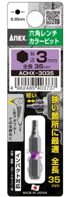 アネックス ACHX-3035 六角レンチカラービット 1本組 H3.0x35 ANEX 兼古製作所 403737 ネコポス可 '