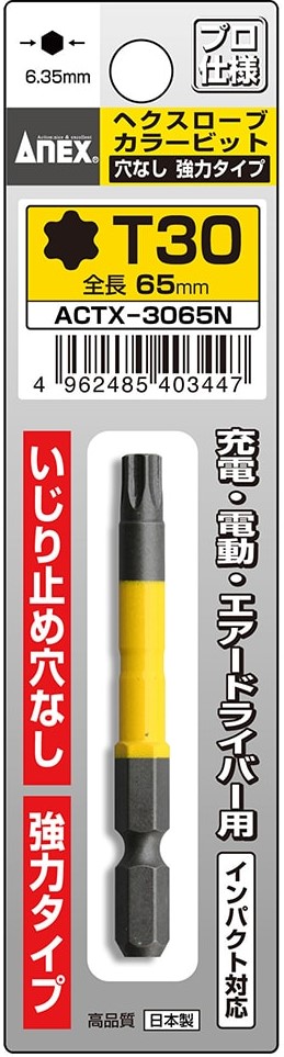 アネックス ACTX-3065N ヘクスローブカラービット 1本組 穴なし T30×65 ANEX 兼古製作所 403447 ネコポス可 '