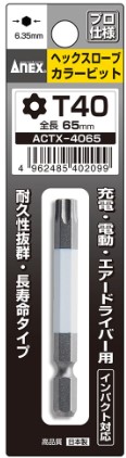 アネックス ACTX-4065 ヘクスローブカラービット 1本組 T40×65 ANEX 兼古製作所 402099 ネコポス可 '