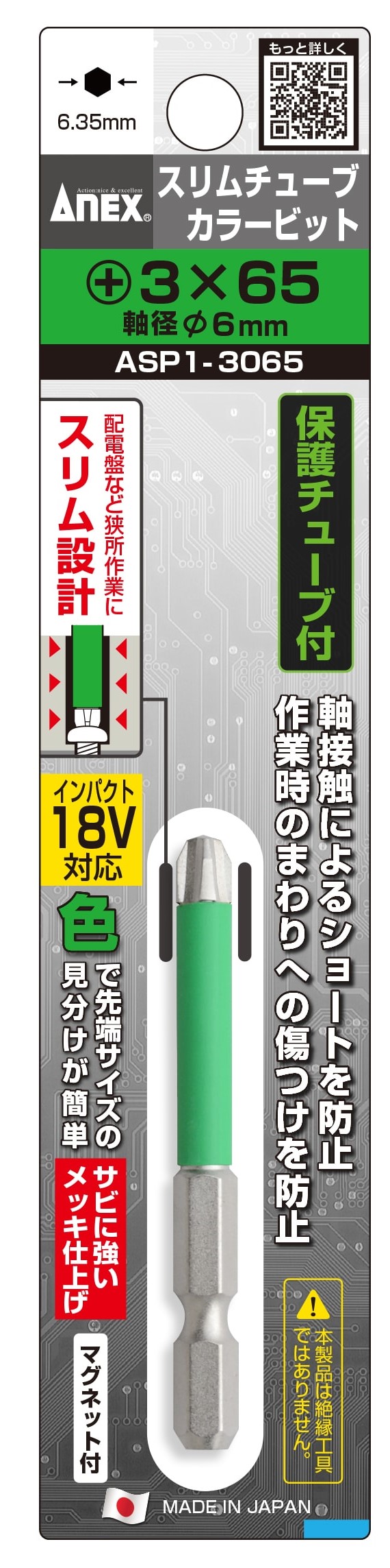 アネックス ASP1-3065 スリムチューブカラービット 1本組 +3×65 ANEX 兼古製作所 403096 ネコポス可 '