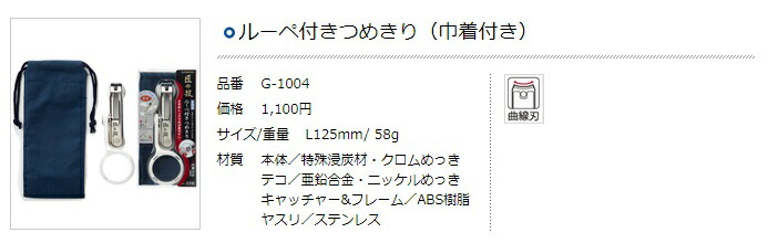 グリーンベル 匠の技 ルーペ付爪切 G-1004 巾着付 サイズ125mm 重量58g 爪切り 手持ちルーペ 卓上ルーペ GREEN BELL ネコポス可 在庫