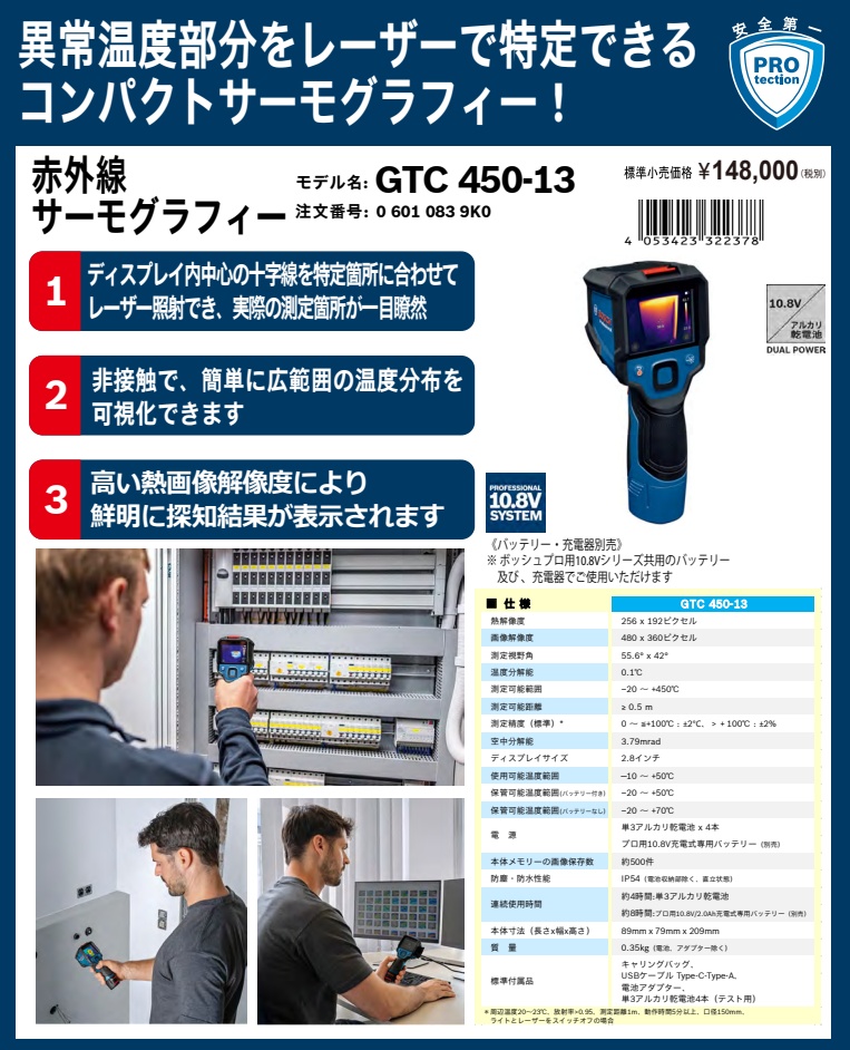 (ボッシュ) GTC450-13 赤外線サーモグラフィー 測定温度?20〜+450℃ BOSCH