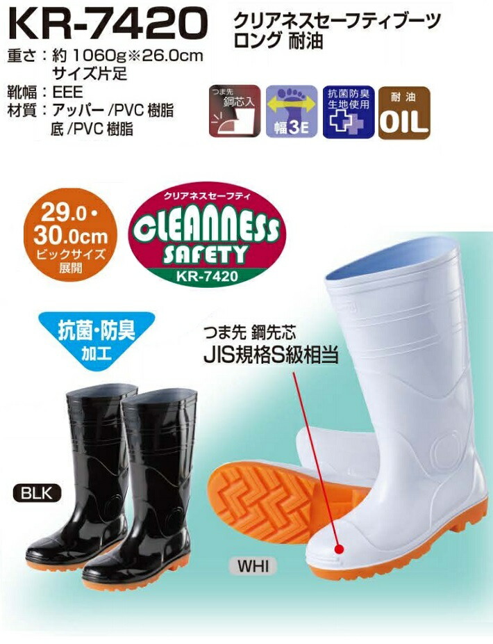 喜多 KR-7420 WHI ホワイト 26.0cm 耐油長靴 セーフティーブーツ 鉄芯入り安全長靴 KITA キタ 送料無料