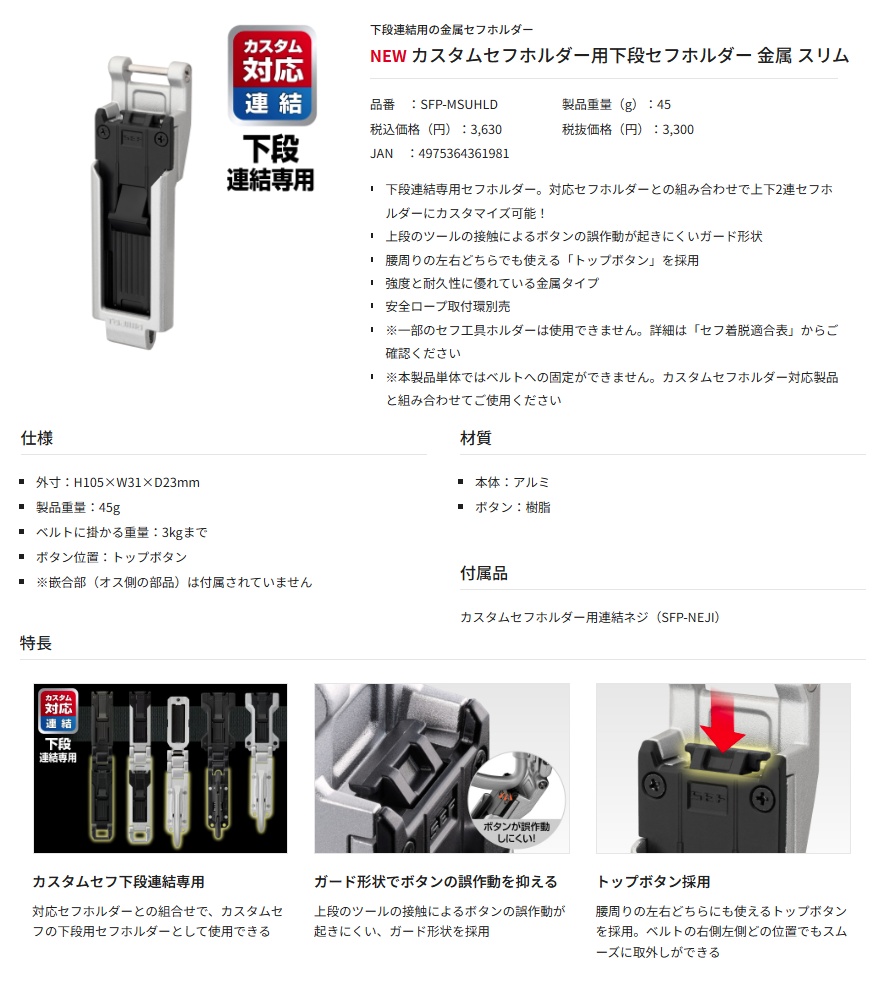 ・下段連結専用セフホルダー。対応セフホルダーとの組み合わせで上下2連セフホルダーにカスタマイズ可能!