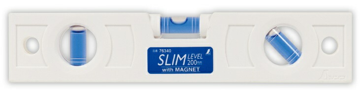 シンワ スリムレベル 200mm 白 マグネット付 76340 ネコポス可 。