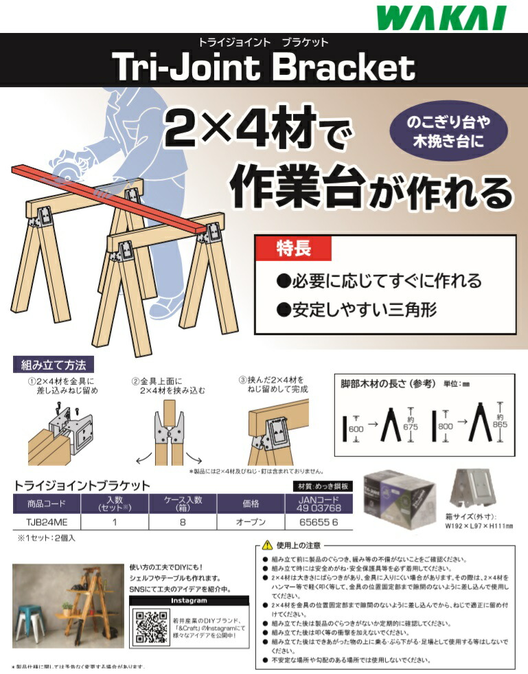 ・トライジョイントブラケット2個 ※2×4材、ねじは別売です。