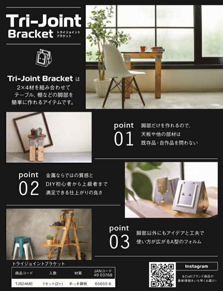 Tri-Joint Bracketは2x4材を組み合わせて、テーブル・棚などの脚部を簡単に作れるアイテムです。