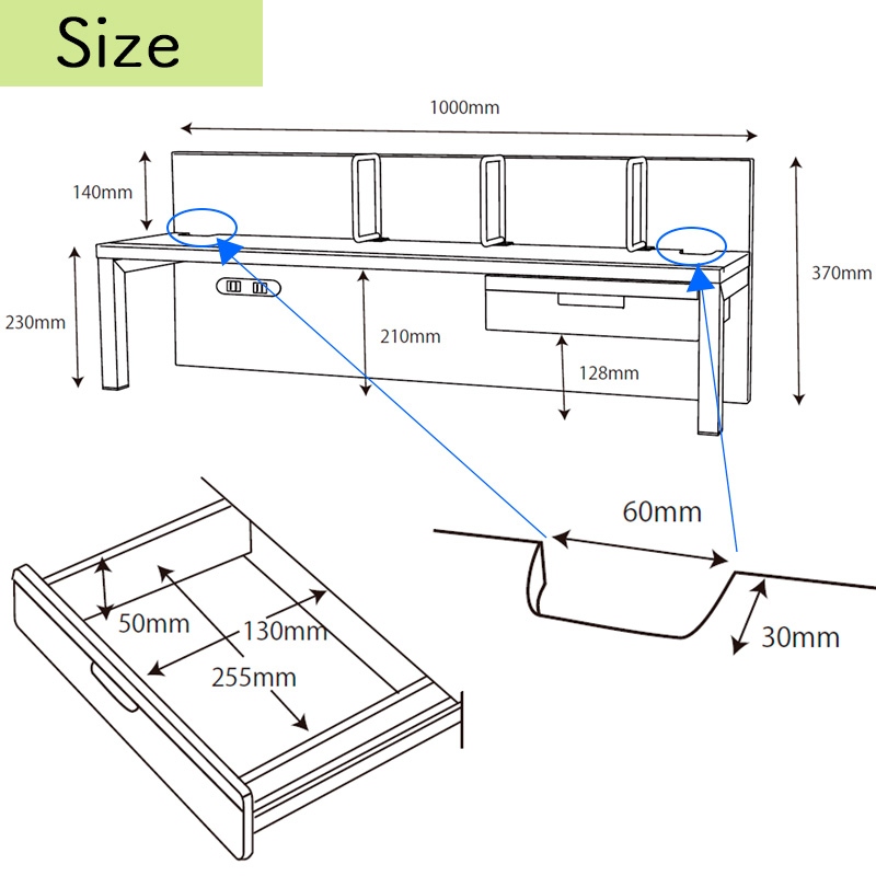 サイズ:W1000 × D233 × H370 mm