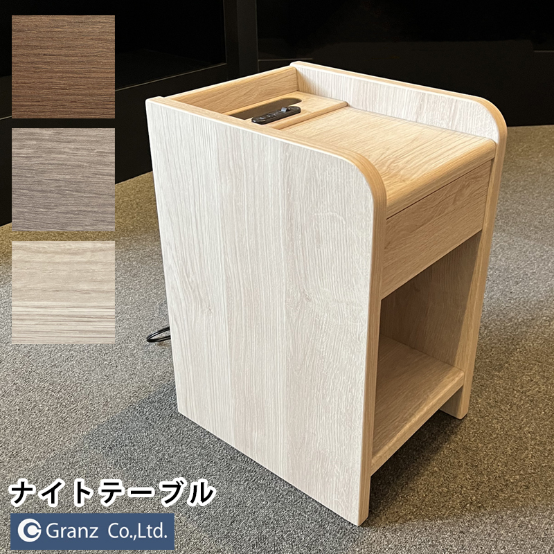 グランツ ナイトテーブル NT508 GYB グレージュ LGY ライトグレー BR ブラウン ベッドサイドテーブル LED照明付き 寝室収納 コンセント付 引出付