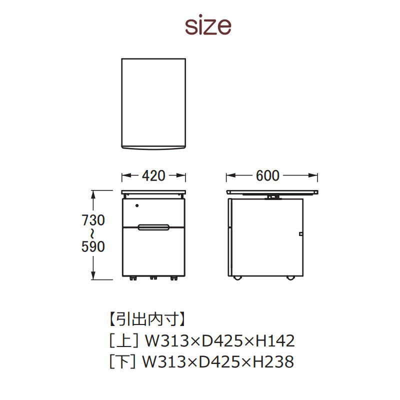サイズ:W420 × D600 × H590〜730 mm