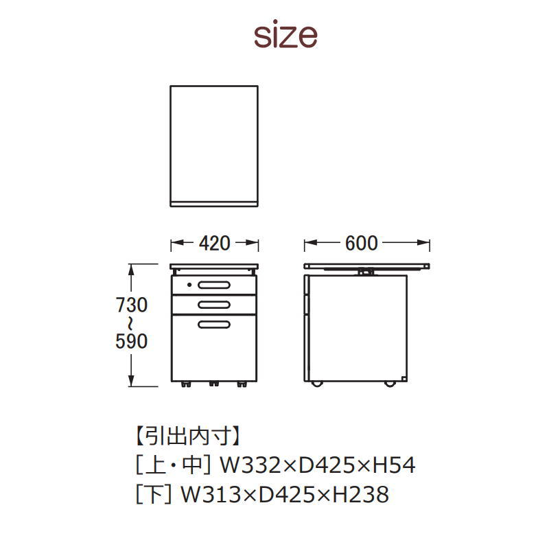 サイズ:W420 × D600 × H590〜730 mm
