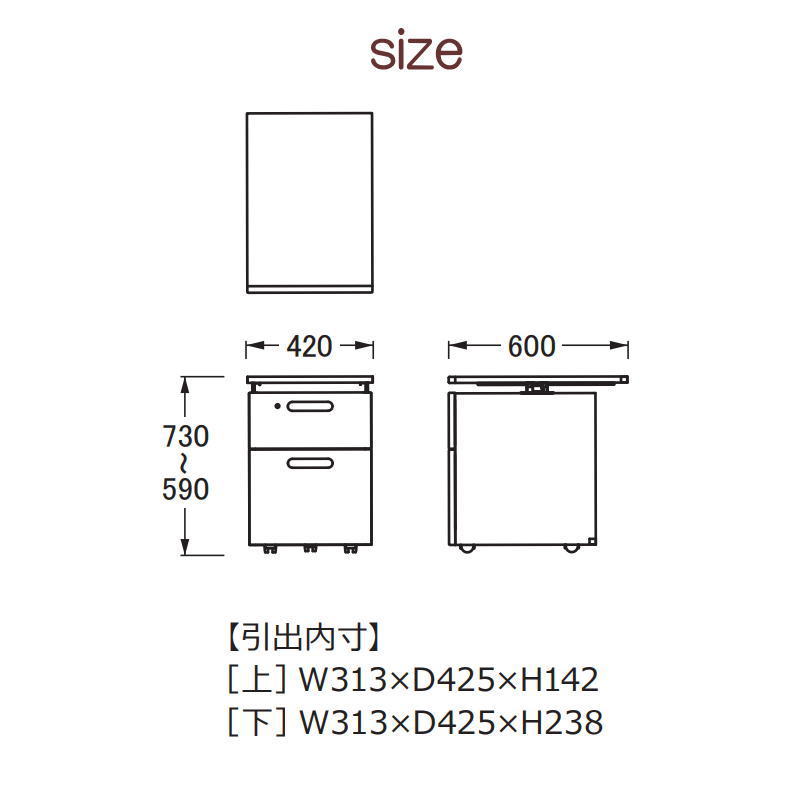サイズ:W420 × D600 × H590〜730 mm