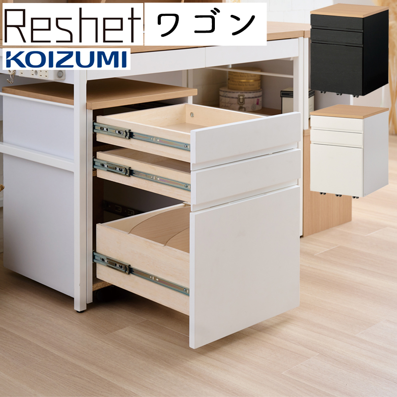 コイズミ 学習机 2025年 リシェット ワゴン デスクワゴン Reshet MDW-157MOWH MDW-158MOBK 学習机用ワゴン 収納 3段 引き出し フルオープンレール 木製