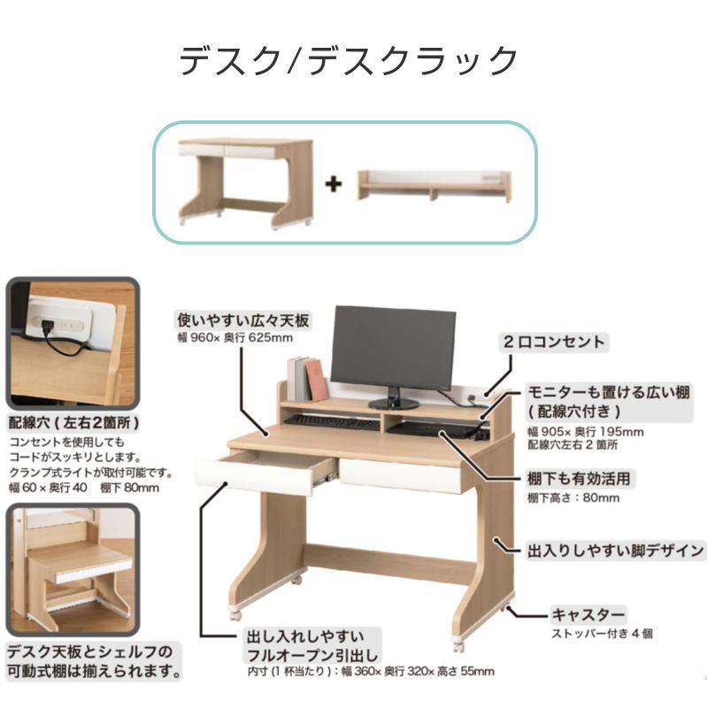 ※デスク・デスクラック・ランドセルラックは追加オプションとなります。