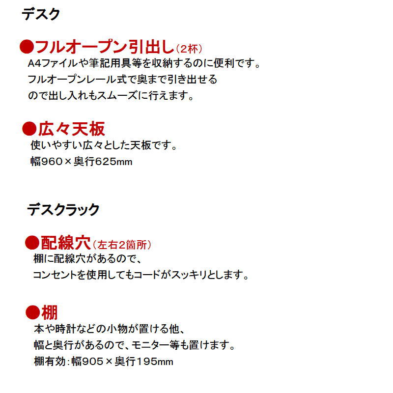 デスクラック W 945 × D 220 × H 180 mm