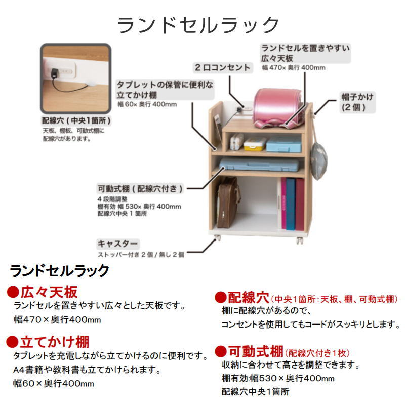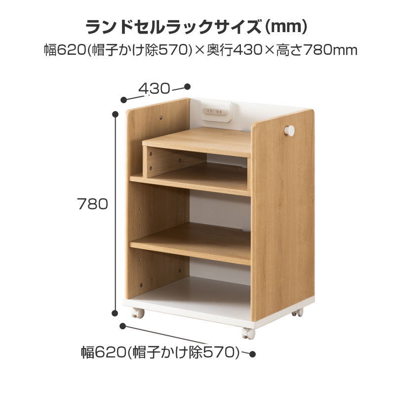 ランドセルラック W 620(帽子かけ除570) × D 430 × H 780 mm