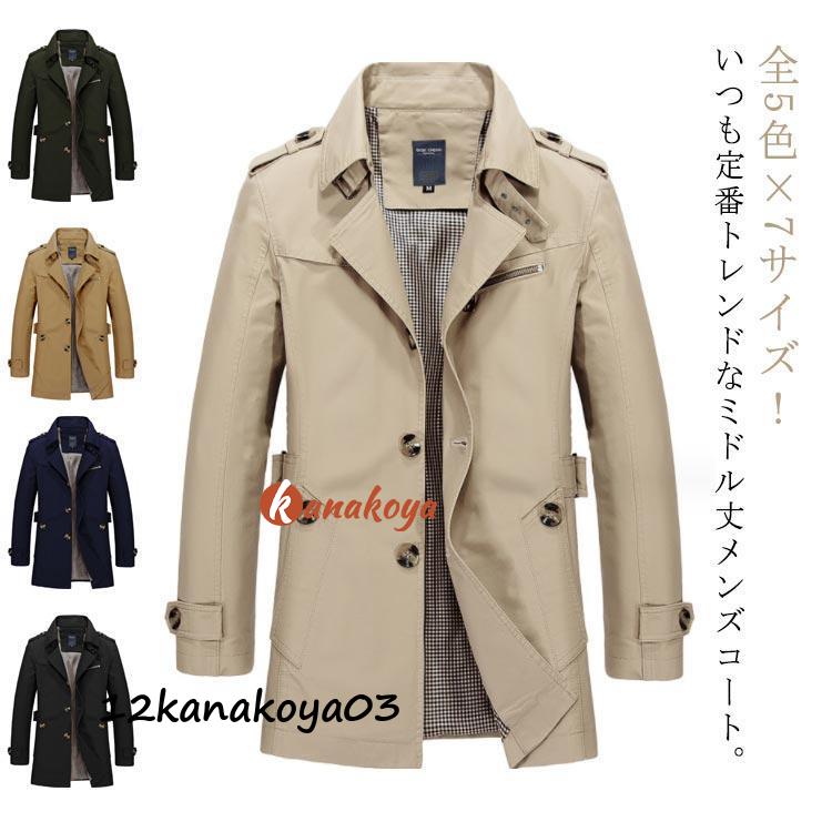 トレンチコート メンズ スプリングコート 春 秋 薄手 上質 コート ミディアム丈 ジャケット ビジネスコート お兄系 通勤 紳士服
