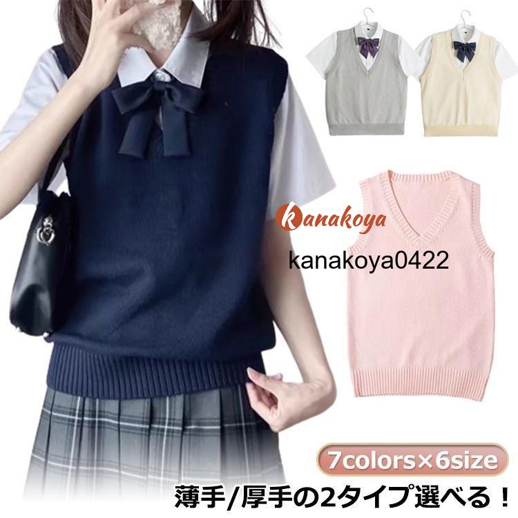男女兼用 夏 女子 ノースリーブ Vネック ニット 冬 スクール シンプル 春 セーター スクールベスト 学生 JK ロングシーズン 制服 ニットベ