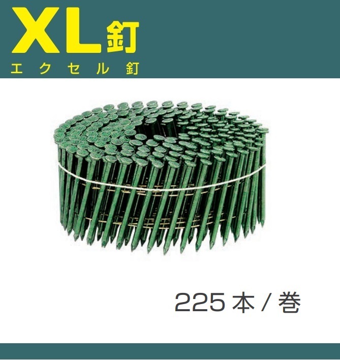 カナイ ワイヤ連結めっき太め鉄丸釘 XL-CNZ50緑(225本×10巻)