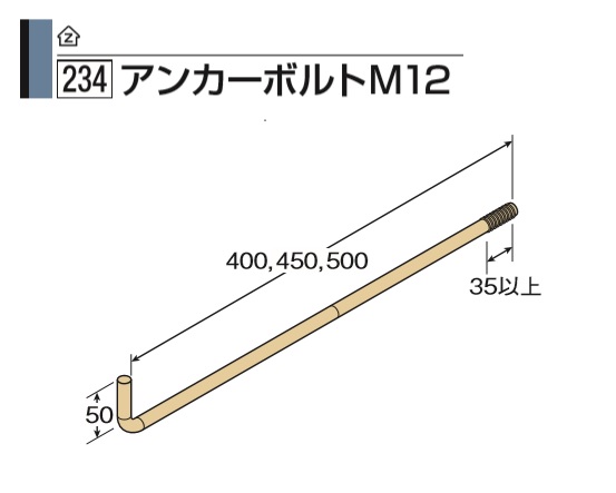 タナカ Z アンカーボルトM12 L=400 AB4401(1本)